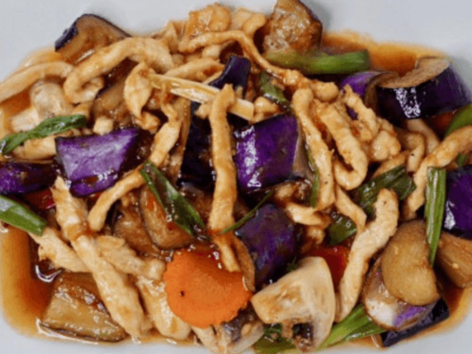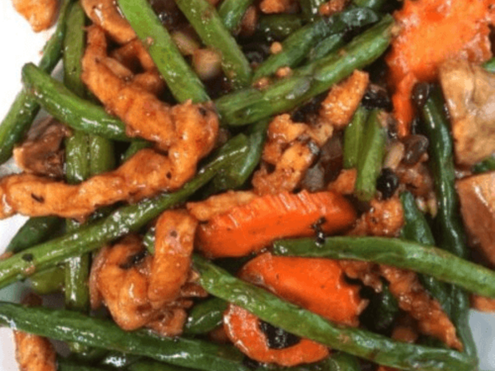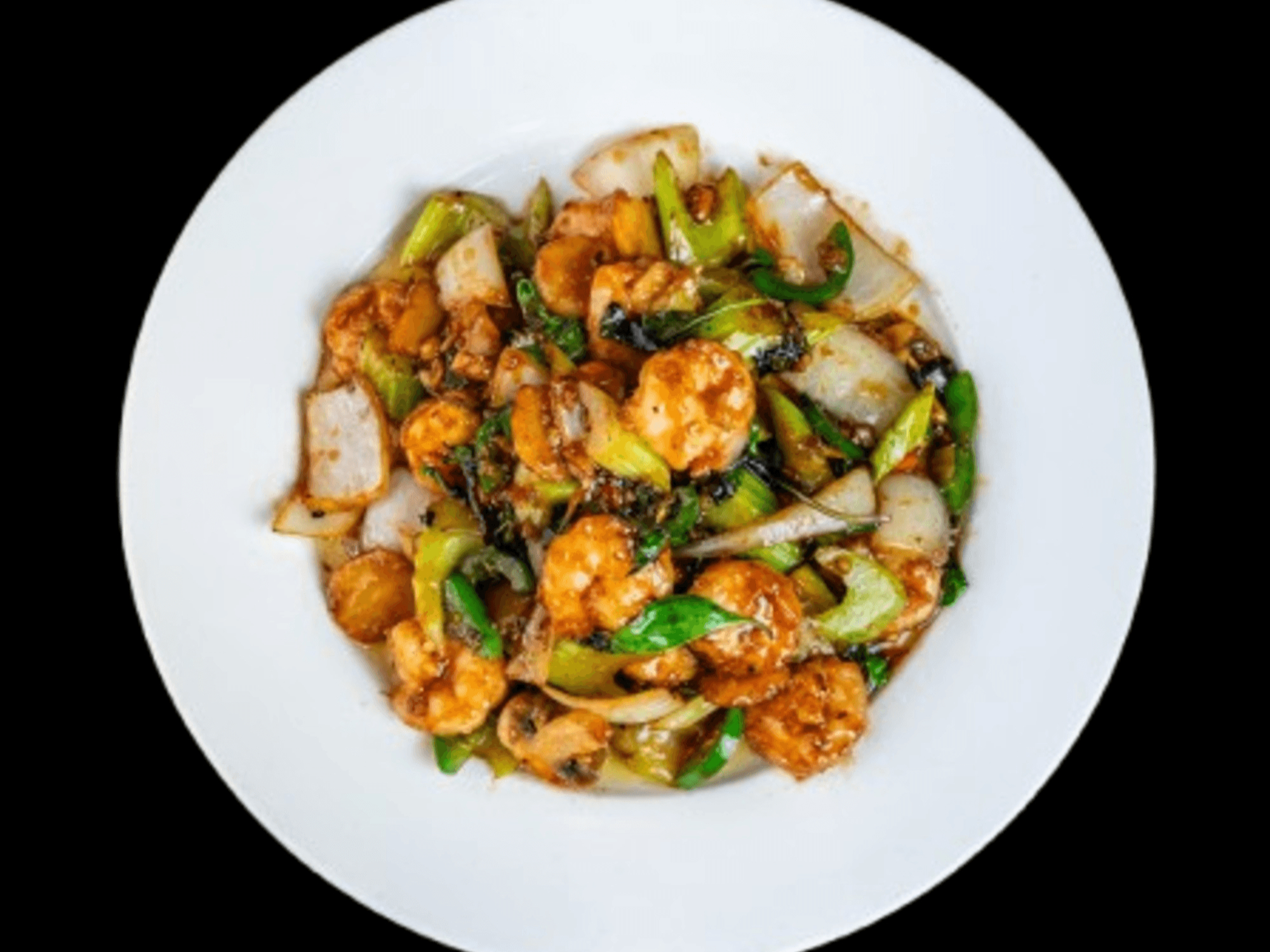 Tender sliced beef with carrots, onion, jalapeno and fresh slices of pineapple tossed in our house garlic ginger brown sauce