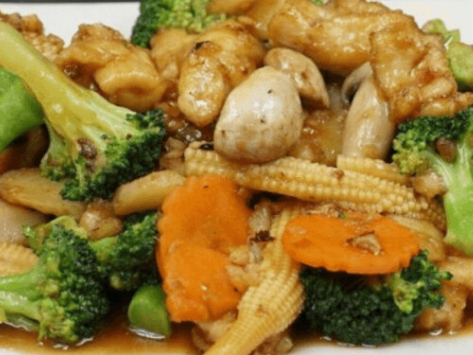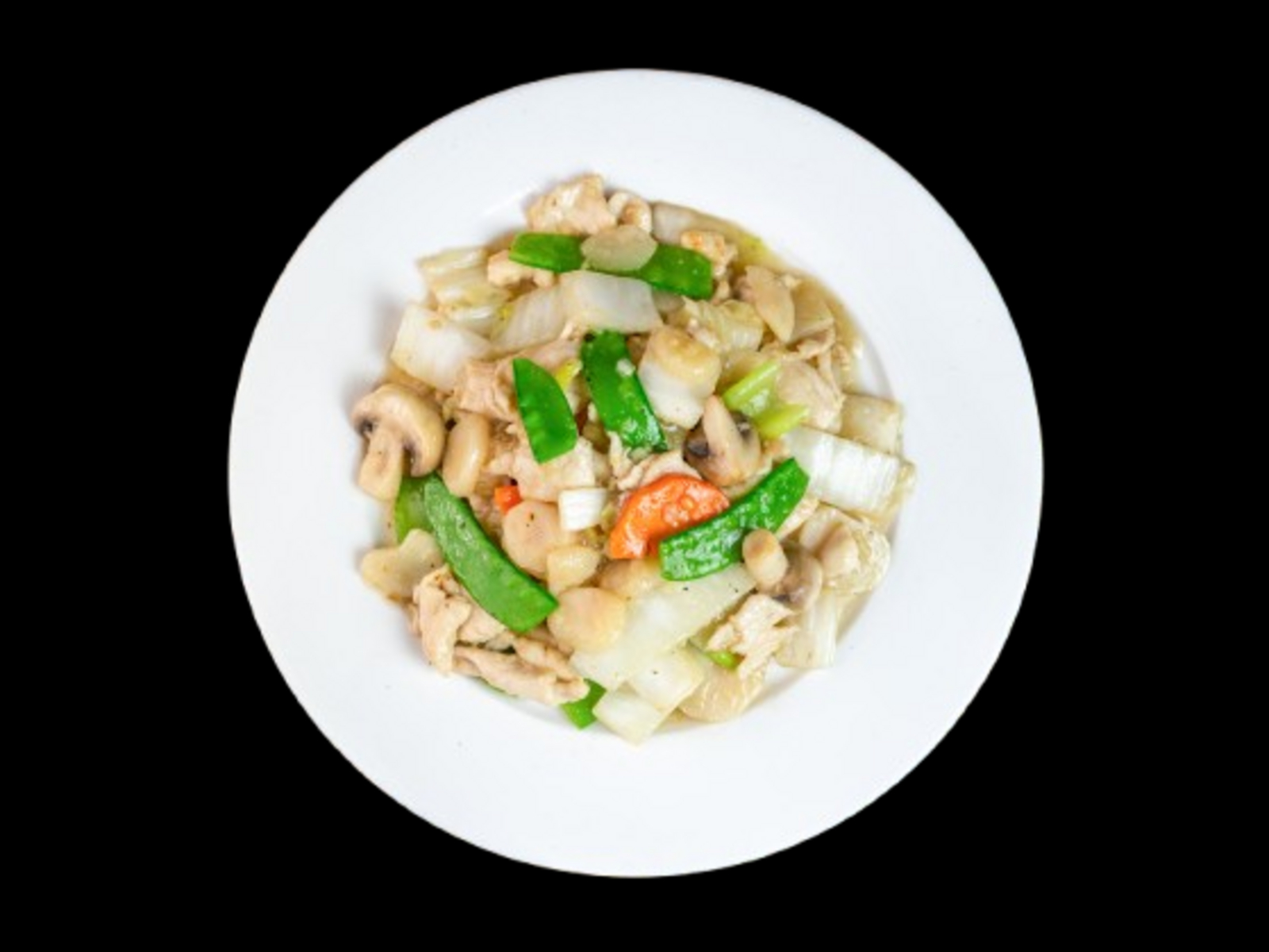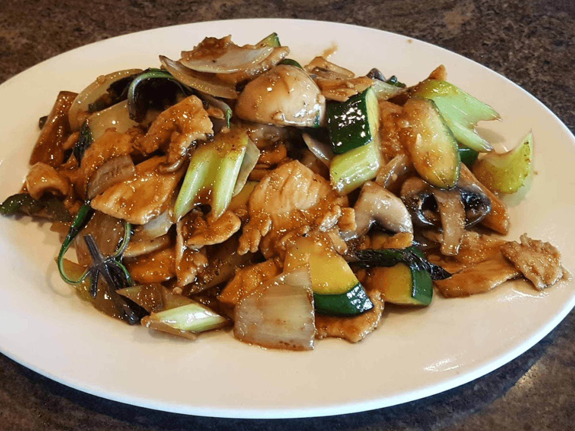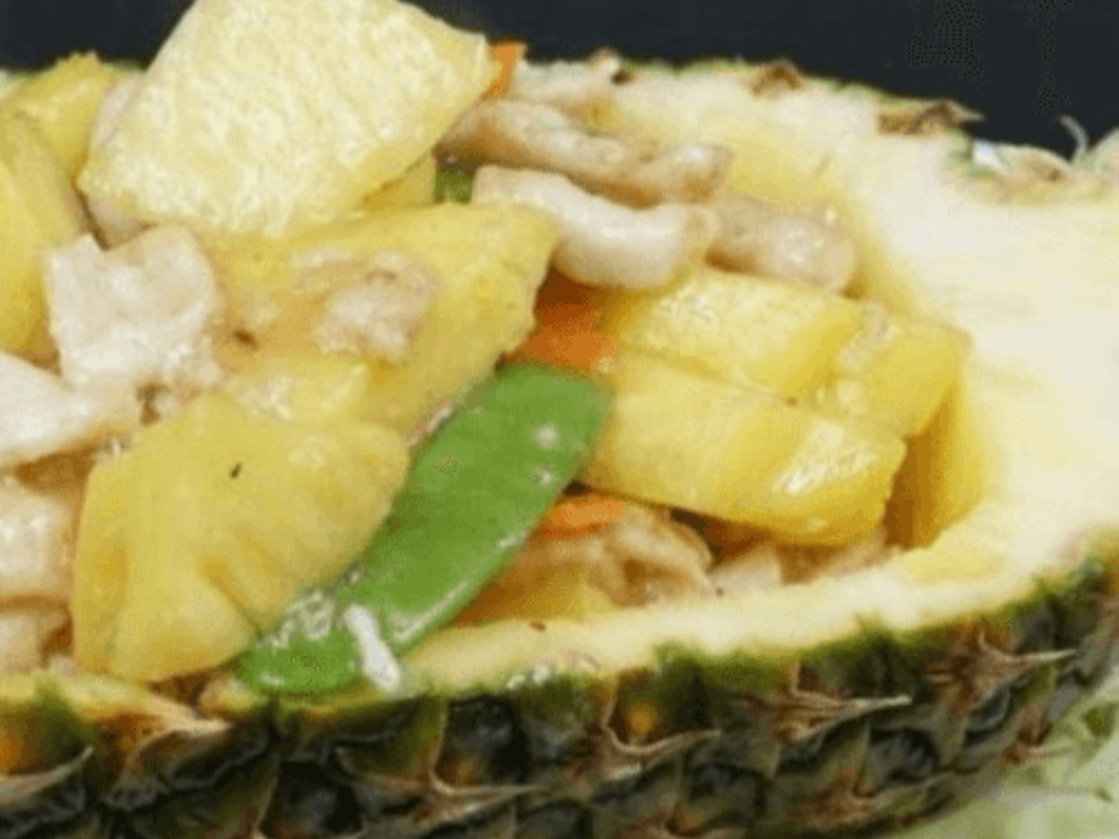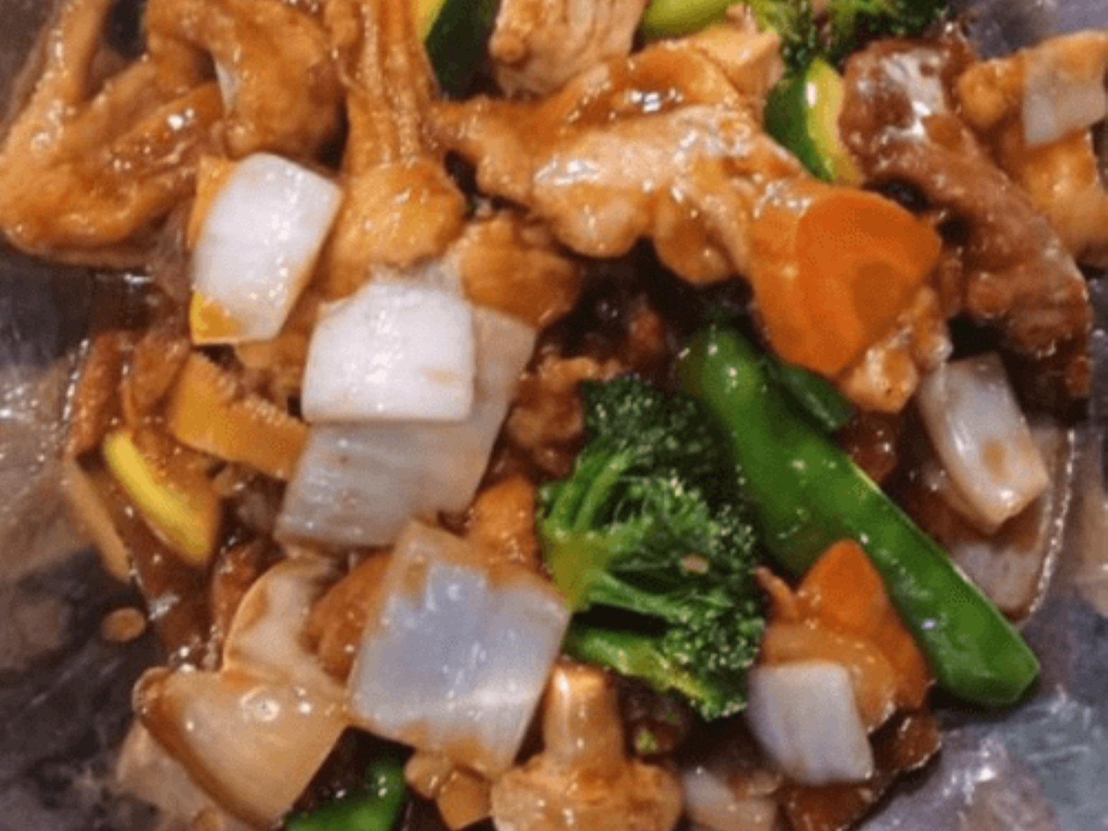 Tender sliced beef with carrots, onion, and fresh slices of pineapple tossed in our house garlic ginger brown sauce