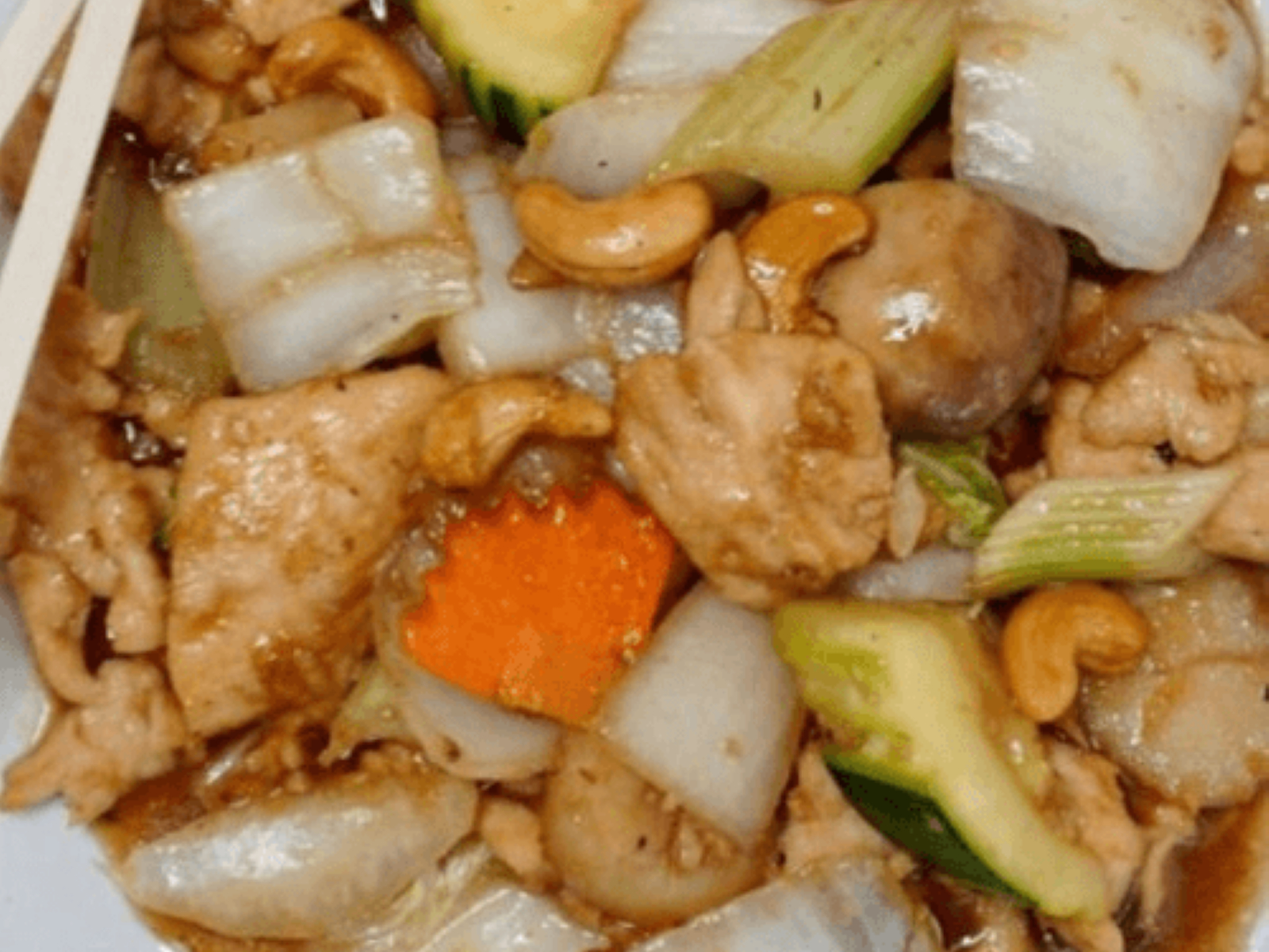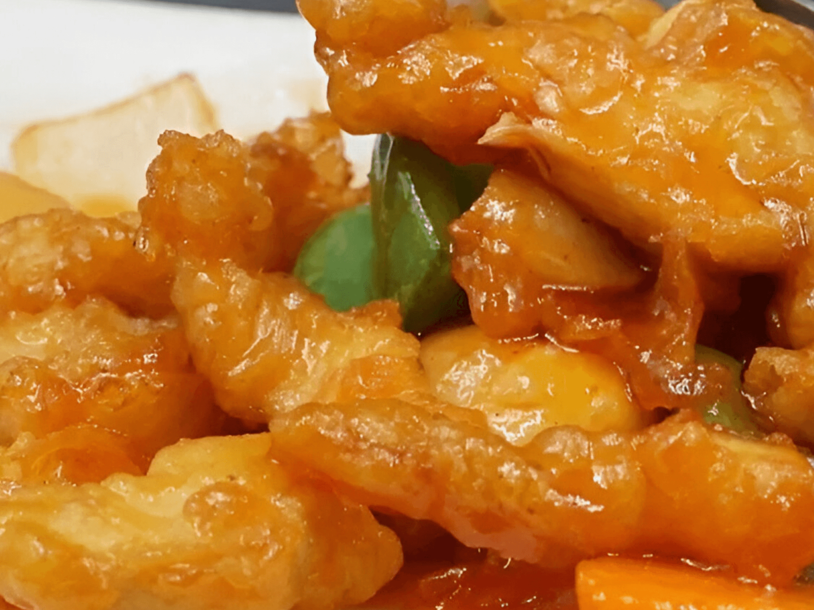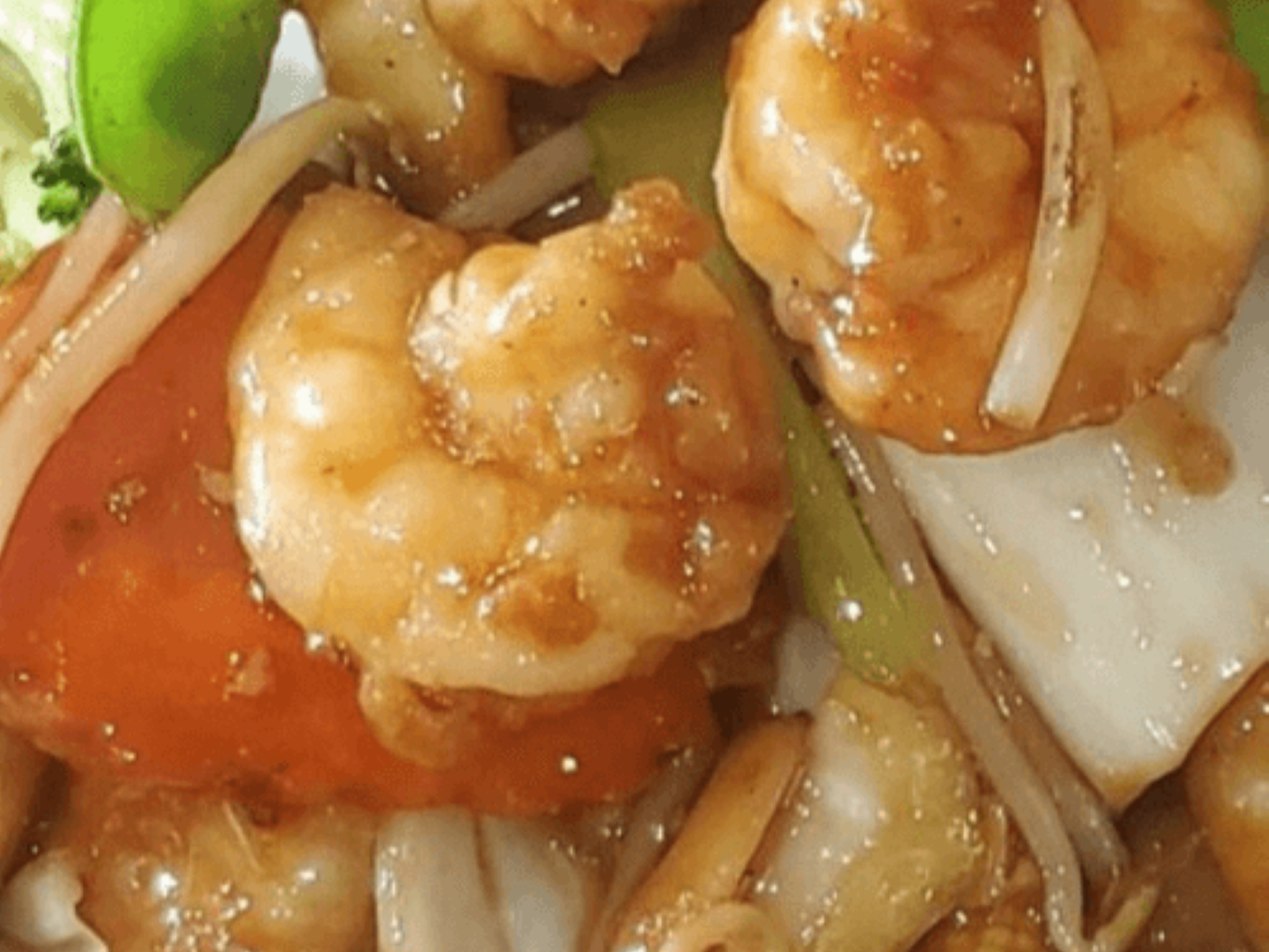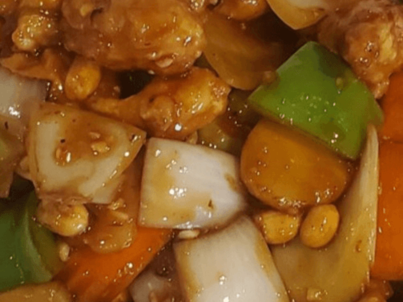 Tender sliced beef with carrots, onion, and fresh slices of pineapple tossed in our house garlic ginger brown sauce